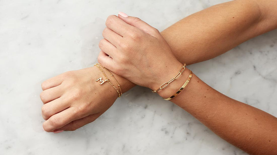 Elevate every outfit with our selection of effortlessly wearable gold & silver bracelets for women. Whether you’re looking for friendship bracelets for you and your bestie, an initial bracelet or meaningful charm bracelet, our versatile selection of bracelets offer endless styling options. Keep it simple by wearing a plain chain bracelet on rotation or choose a thoughtful gift with a delicate charm bracelet that is imbued with meaning.