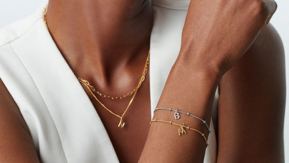 From a classic initial pendant necklace to initial hoop earrings, each style is crafted in sterling silver or 18ct gold vermeil to wear daily and treasure long term. Opt for a dainty initial bracelet or go bold with a double initial necklace—ideal for stacking, styling, or gifting with intent.
